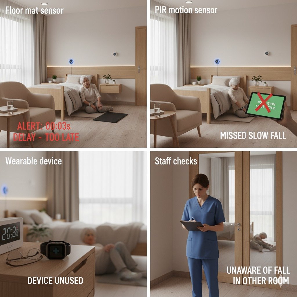 Falls are time-critical. A resident on the floor for 30 seconds is very different from one left for 30 minutes. Yet too many care homes still rely on outdated tools that delay alerts or miss falls entirely.